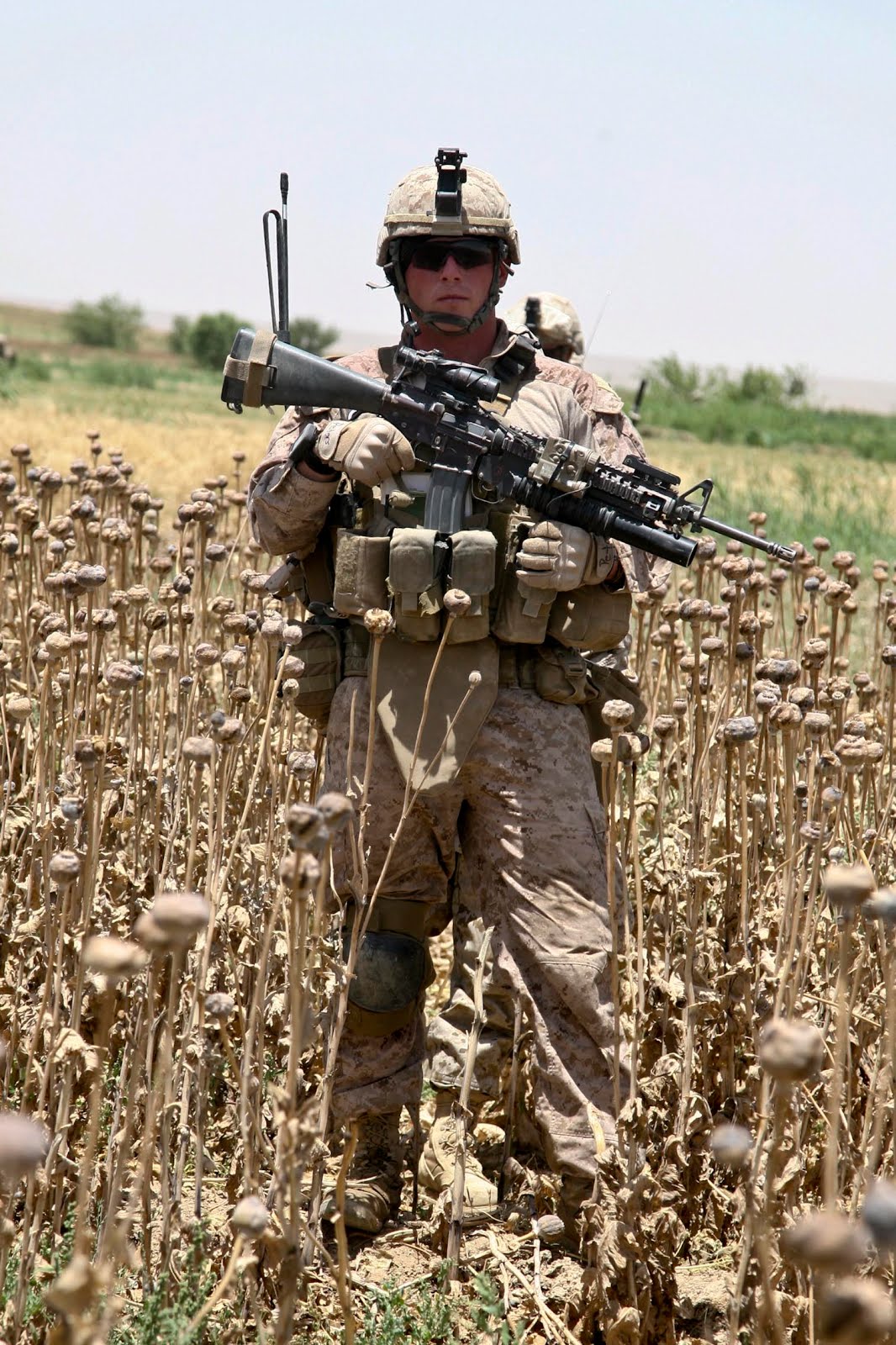 | Ein US-Soldat posiert mitten in einem reifen Mohnfeld |