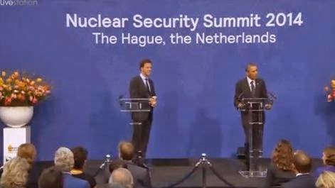 Am Ende des 24-stündigen Gipfeltreffens in Den Haag hielt Obama am Dienstag eine Rede vor der Presse. Er verspottete Russland als Regionalmacht und wertete das Vorgehen der russischen Regierung gegenüber den kleineren Nachbarstaaten als Zeichen der "Schwäche". Er sagte, die USA müsse nicht seine Nachbarländer überfallen, um Einfluss auszuüben. Danach sprach er über die NSA-Spionage, betonte die Rechtsstaatlichkeit der USA und den Schutz der Privatsphäre. Diese Aussagen waren peinlich genug, aber am peinlichsten war, keiner der vielen anwesenden Presstituierten klatschten am Ende seiner Rede. Es war totenstill als er von der Bühne ging.