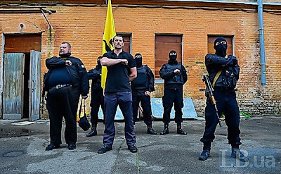 Das ist die kritiklose Übernahme der Sprachregelung des Putsch-Regimes. Das Asow-Battalion, dass die Nazi-Symbole der SS als Wappen trägt, wird von Kiew als "Freiwilligenverband zu territorialen Verteidigung" beschrieben. Das ist natürlich voll gelogen, denn diese Kriegsverbrecher, die sich in der Ostukraine gegenüber Zivilisten austoben, unterstehen direkt dem ukrainischen Innenministerium und entsprechen einer "Heimatschutztruppe".