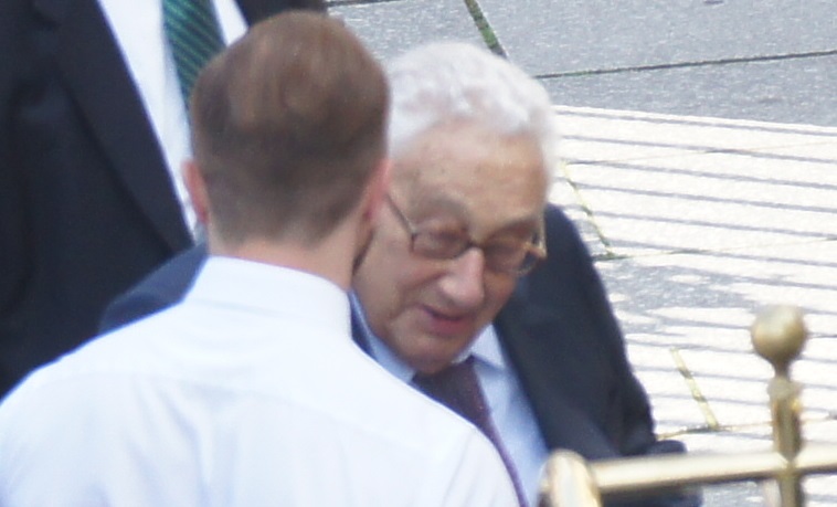 Der Massenmörder Henry Kissinger (3 Mio Menschen auf dem Gewissen in Vietnam, Laos und Kambodscha) kann mit 93 Jahren gerade noch gehen: