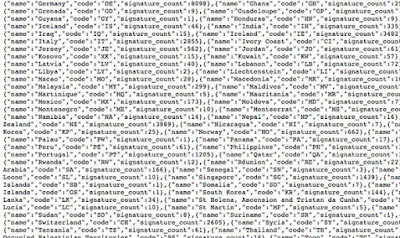 Folgendes Bild zeigt einen Ausschnitt des Datenbestandes der Petition. Achtet auf die Ländernamen links.