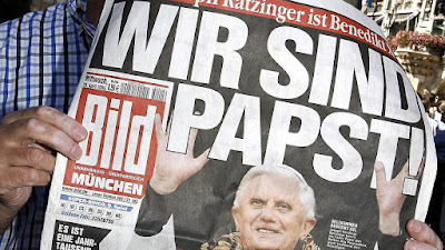 Könnt ihr euch noch an die Schlagzeile der Blöd-Zeitung vom 20. April 2005 erinnern? Sie lautete "Wir sind Papst!" weil Joseph Aloisius Ratzinger der erste Deutsche seit 1523 in dieses Amt gewählt wurde. Die Zeitung drückte damit die Stimmung in der deutschen Bevölkerung aus, alle Deutschen wären stolz einen deutschen Papst zu haben.