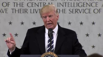 Bei seiner 16-miniütigen Rede vor einer Versammlung von 400 CIA-Mitarbeitern, betonte er drei Dinge: 1. Sie würden mit seiner Wahl von Mike Pompeo als ihren neuen Chef sehr zufrieden sein. 2. Er würde voll hinter dem Geheimdienst stehen, denn es waren die Medien, die Zwietracht zwischen ihm und ihnen gestreut hätten. 3. Ihr Hauptauftrag wäre ab jetzt, den "radikal islamischen Terrorismus" weltweit auszumerzen.