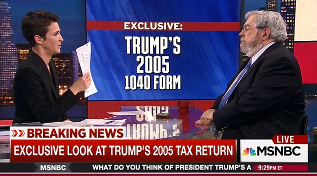 Maddow erzählte den Zuschauern, sie hätte die Steuererklärung vom Journalisten David Cay Johnston bekommen, (rechts im Bild), der die Dokumente in seinem Briefkasten gefunden hat.