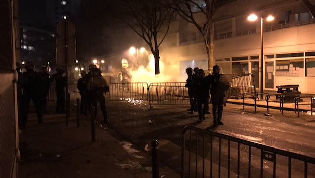 Am 2. Februar 2017 in der No-Go-Zone einer östlichen Vorstadt von Paris hat eine Polizeipatrouille Schreie gehört. Sie haben entschieden nachzuschauen was los ist. Es handelte sich um einen Streit wegen einem Drogendeal. Bei der Überprüfung der Personalien wurde der oben erwähnte junge Schwarze ausfallend und beleidigte die Polizisten. Sie versuchten ihn festzunehmen aber er wehrte sich und schlug auf die Polizisten ein, die ihn schliesslich überwältigten. Später behauptete er, die Polizisten hätten ihn mit Knüppeln geschlagen und einer ihm den Stock in den After gerammt. Eine Untersuchung zeigte, der junge Mann wurde nicht vergewaltigt, aber es war bereits zu spät, denn über den sozialen Medien verbreitet sich die Lüge wie im Lauffeuer.