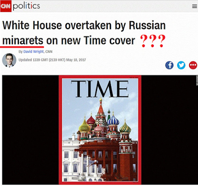 Aber nicht nur die Redakteure des TIME Magazine haben sich als nichts wissende Idioten verraten, sondern auch der Nachrichtensender CNN, das CIA News Network. Sie behaupten, das Weisses Haus wurde von russischen Minarette übernommen. Für sie sind die Zwiebeltürme scheinbar christliche Minarette.