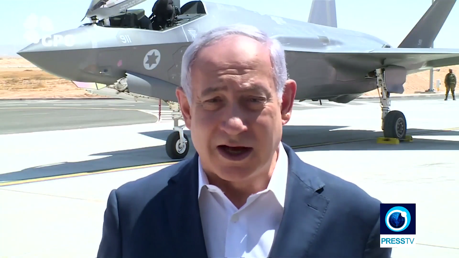 Der Diktator des zionistischen Konstrukts (da er ohne Parlament bis zur Neuwahl am 17. September regiert) hat dem Iran mit Luftangriffen gedroht. Beim Besuch einer israelischen Luftwaffenbasis stellte Netanjahu sich vor einer F-35 und behauptete, israelische Kampfflugzeuge können überall im Nahen Osten eingreifen, "einschliesslich Iran und Syrien".