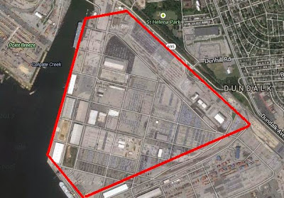 | Der Hafen von Baltimore komplett zugestellt mit Autos |